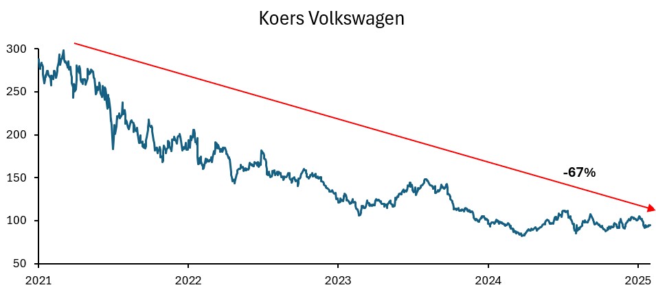 Totdat een tsunami van elektrische auto’s van Tesla en later uit China het bedrijf overspoelde. De nieuwe modellen kwamen te laat, waren niet goed genoeg of te duur. Volkswagen kwam er al snel achter dat ze optimaal presteerde in een wereld die niet meer bestond.